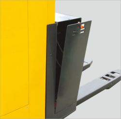 ■ 貨叉頭部設(shè)計有導(dǎo)向輪,進出托盤順暢。